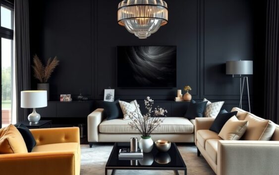 Jak łączyć ciemną ścianę z meblami, dodatkami i oświetleniem, by zachować przestronność i styl?
